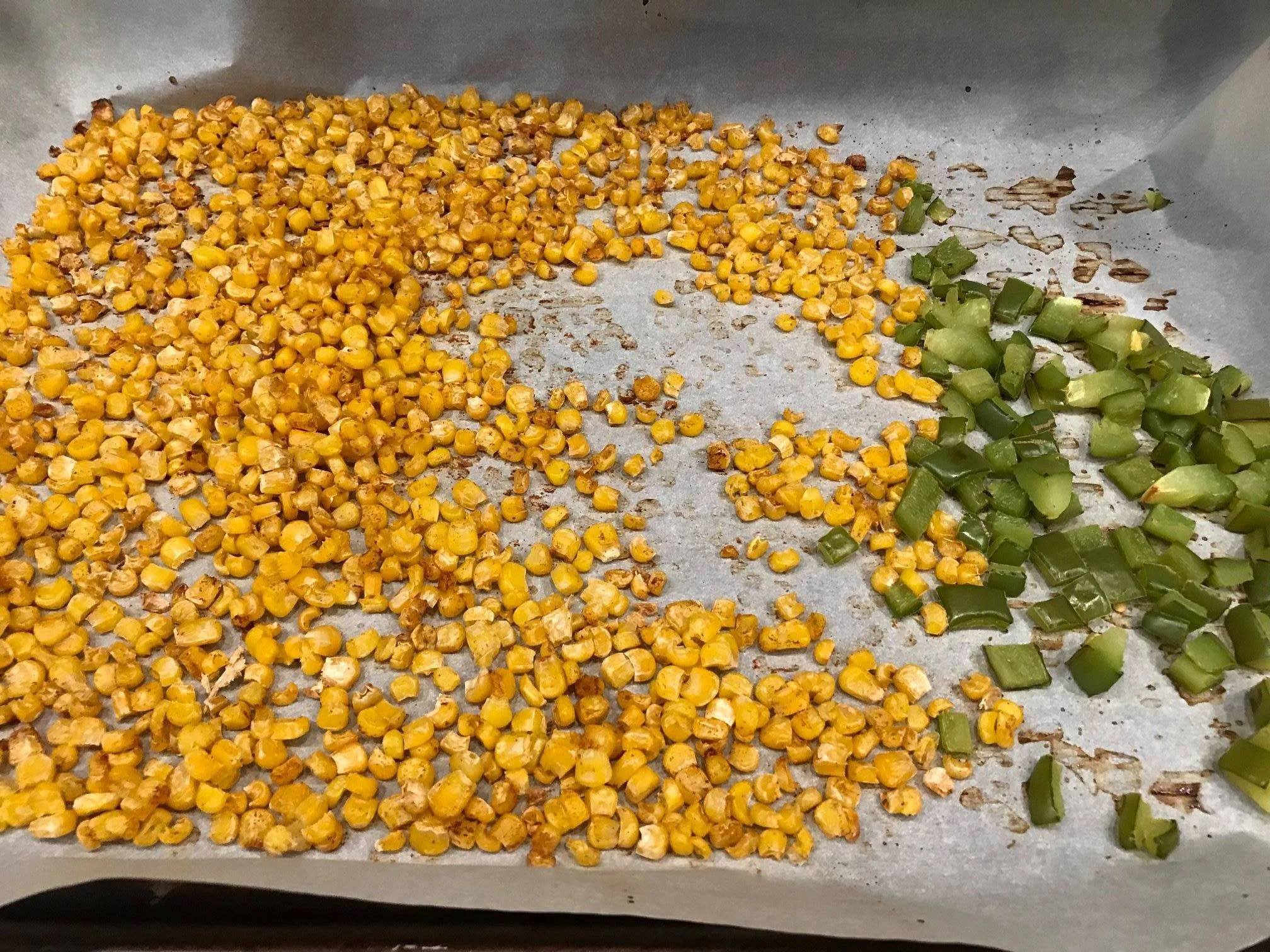 -Had it been grilling weather, I would have grilled corn on the cob and the bell pepper. Instead, I roasted the corn and chopped bell pepper in the oven though I don't think this step is necessary so you can skip it. (I tossed the corn with 1/2 tsp paprika, chopped the bell pepper, then placed them both on a baking sheet lined with parchment paper. Baked 400 degrees for 20 minutes, turning half way through.)