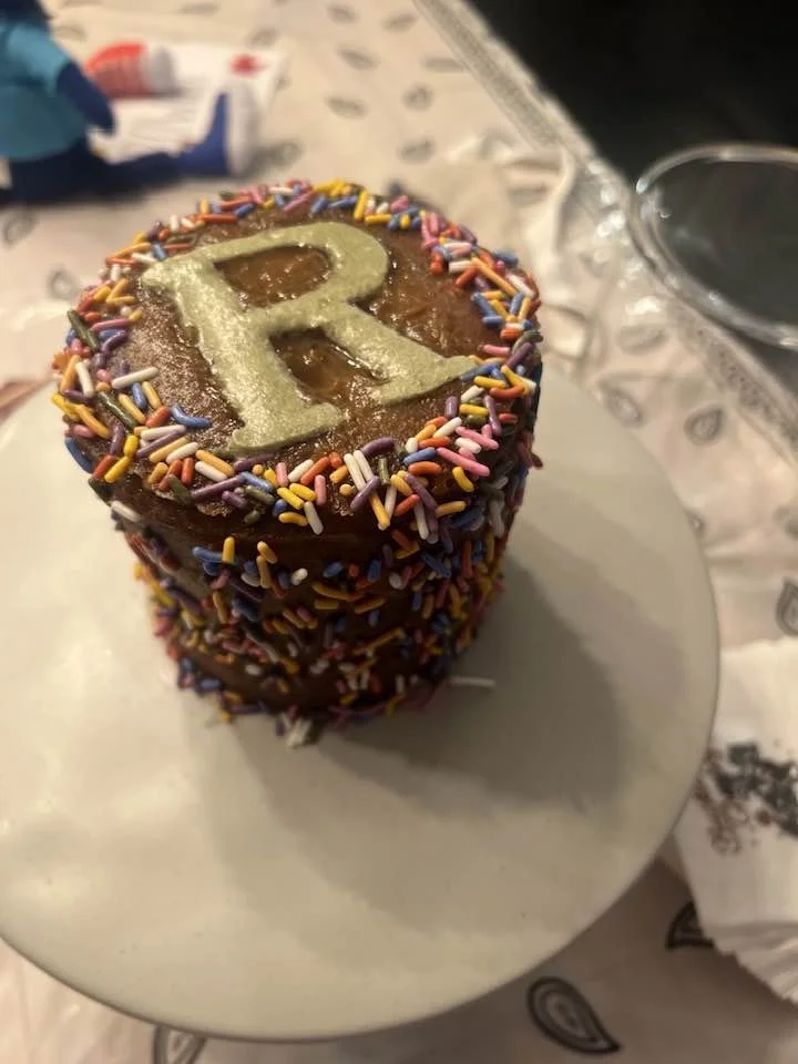 Here's the recipe by “Ambitious Kitchen” that we used for the cake: Baby’s First Healthy Smash Cake. To make it vegan, we used "flax eggs" instead of eggs. Here's how to make a "flax egg": How To Make a Flax Egg